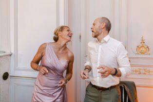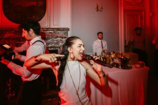 La cérémonie laïque s’est déroulée dans une atmosphère chaleureuse et élégante, portée par une scénographie riche, délicate et pleine de personnalité. Et puis… cette ambiance ! Un magicien, un liveband, une illustratrice, un barman offrant des cocktails signature, ont littéralement galvanisé la journée. Une folie maîtrisée, comme je les aime : festive, chic, inoubliable. Un petit mariage, oui.